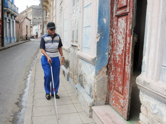 One day in front of my workplace, I saw him moving on the sidewalk so fast. He was walking wearing black sunglasses and with the help of a cane. I went closer to talk to him, it was enough to tell him who I was once for remembering my voice forever. Back then he lived far away, in the west side of the city, and every day, early in the morning, he would cross the main streets in Camagüey until Popular street, the seat of his workplace when he is not working for the ANCI or the Party.