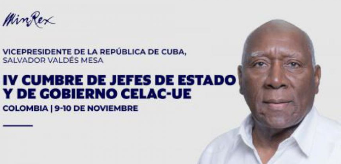Salvador Valdés Mesa, vicepresidente de Cuba, participa en la IV Cumbre de Jefes de Estado y Gobierno de la Comunidad de Estados Latinoamericanos y Caribeños y la Unión Europea, inaugurada hoy por Gustavo Petro, presidente de Colombia, en calidad de anfitrión.