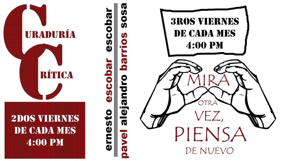 Ernesto Escobar Escobar es investigador, profesor y crítico de arte, y Pavel Alejandro Barrios Sosa, guionista, curador y crítico de arte, y ambos preparan otro taller, Mira otra vez, piensa de nuevo, previsto los terceros miércoles, para discutir luego de ver un audiovisual accesible en La Mochila.
