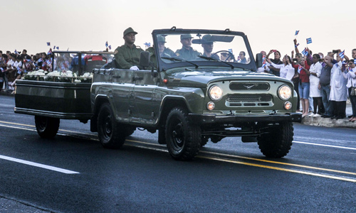 En la Explanada de la Punta, en la bahía habanera una nutrida representación de niños, jóvenes, estudiantes, trabajadores, ancianos, turistas y pueblo en general, acudió a rendir homenaje al líder de la Revolución cubana, cuyas cenizas se trasladan desde este miércoles hasta el cementerio de Santa Ifigenia, en Santiago de Cuba reeditando la Caravana de la Libertad que él encabezara hace casi 58 años.