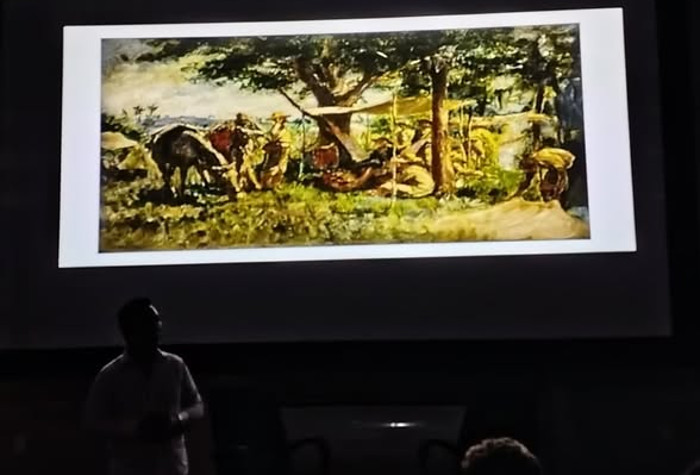En pantalla apareció la obra “Máximo Gómez en su campamento”, del pintor academicista y mambí Armando García Menocal, ayudante del Generalísimo en la Guerra de Independencia.
