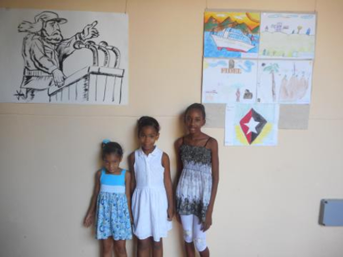 Joyce Alfaisie Betharte, una de las cinco pintoras, me contesta con un dudoso “no sé”, cuando le pregunté si el arte será su camino. Aunque tenga 11 años y oculte su gusto quizá por las Ciencias Exactas o la Medicina, a flor de piel sabe conjugar su talento en uno de los pasajes cruciales de la vida del Comandante en Jefe: el viaje en el yate Granma.