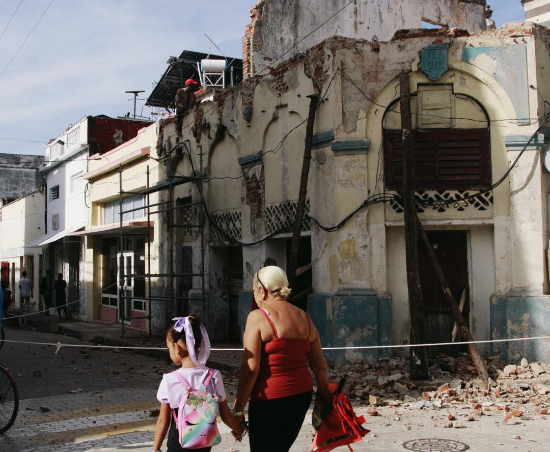 La niña avanzaba agarrada a la mano de su abuela, mirando los restos de la vieja calle con ojos curiosos. A pesar del derrumbe, ambas caminaban tranquilas, confiando que todo volverá a levantarse algún día. El sol iluminaba el polvo en el aire, como recordándoles que siempre queda un poco de luz. Y así siguieron, dejando atrás las ruinas, pero llevando la esperanza con ellas.