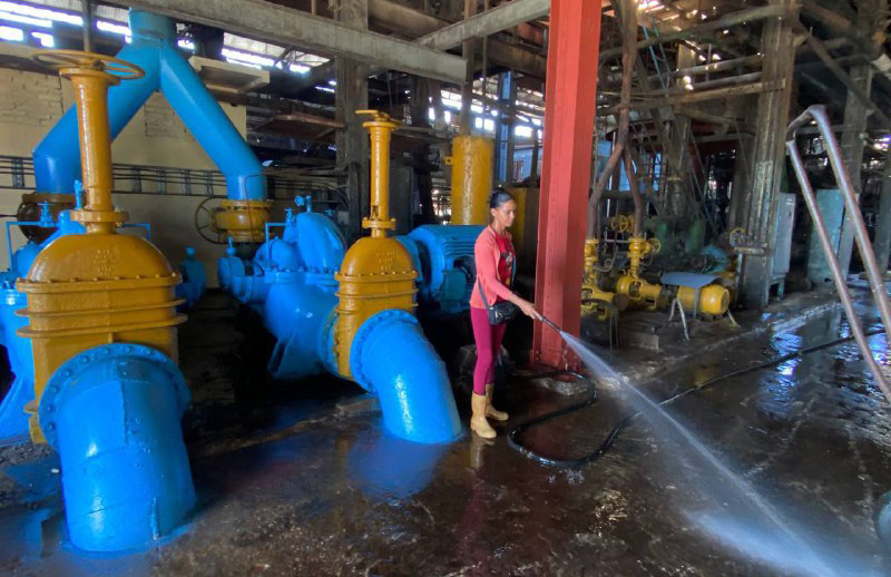 Actualmente, comentó, se mantienen laborando en el ingenio 385 azucareros, y entre las acciones de mayor envergadura, mencionó el montaje de un condensador y un juego de cuchillas en el basculador, el ajuste de los molinos y la reparación de la centrífuga.
