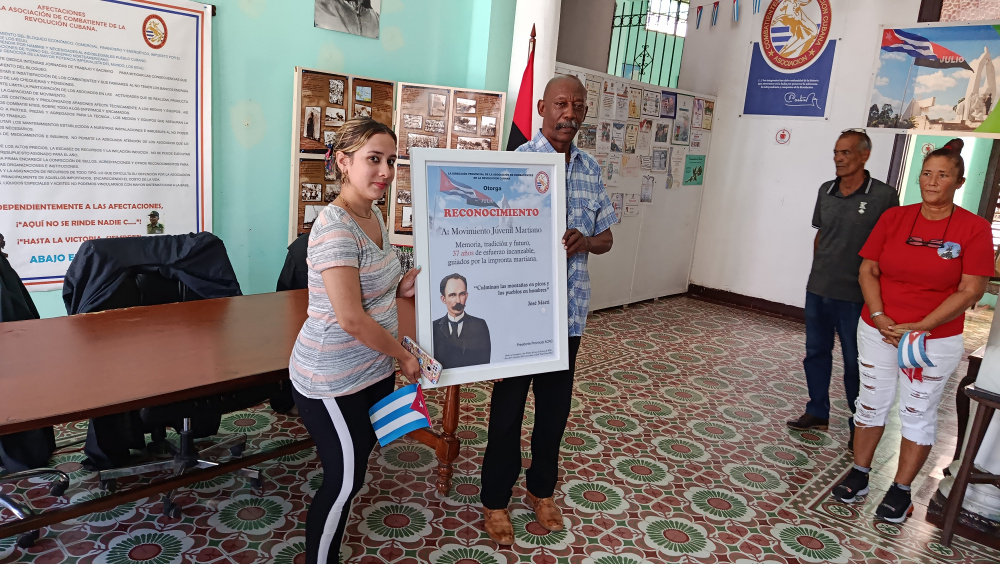 Durante la cita se le entregó un reconocimiento al Movimiento Juvenil Martiano de esta localidad, con motivo del aniversario 37 de esa organización, recibido por su presidenta, Thailín Machado Pérez. "Vivimos un momento crucial de nuestra historia y sabemos que nuestro rol, en estos instantes, debe centrarse en el apoyo a nuestro socialismo en cualquiera de las trincheras que se nos encomiende", expresó la joven dirigente.