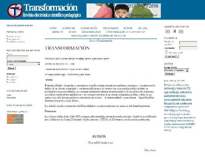 Como publica en su portada, Transformación, que forma parte de la colección de 67 revistas científicas cubanas, tiene como objetivo estimular, difundir y desarrollar el conocimiento científico original generado por académicos nacionales y extranjeros en los ámbitos de las ciencias pedagógicas y sus innumerables puntos de contacto con otras ciencias sociales.