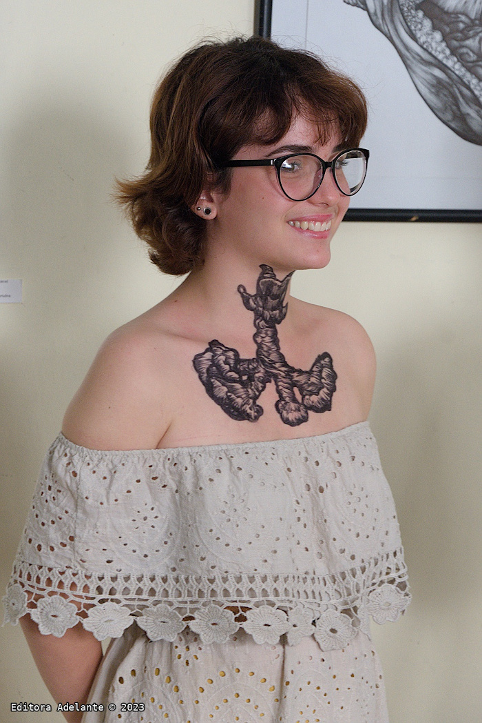 In front of her previous exhibition, De Stelli Corporis Fabrica, health professionals praised those anatomical drawings, the detail in representing each organ, although her imaginative work goes beyond declaring the human body the perfect little machine.