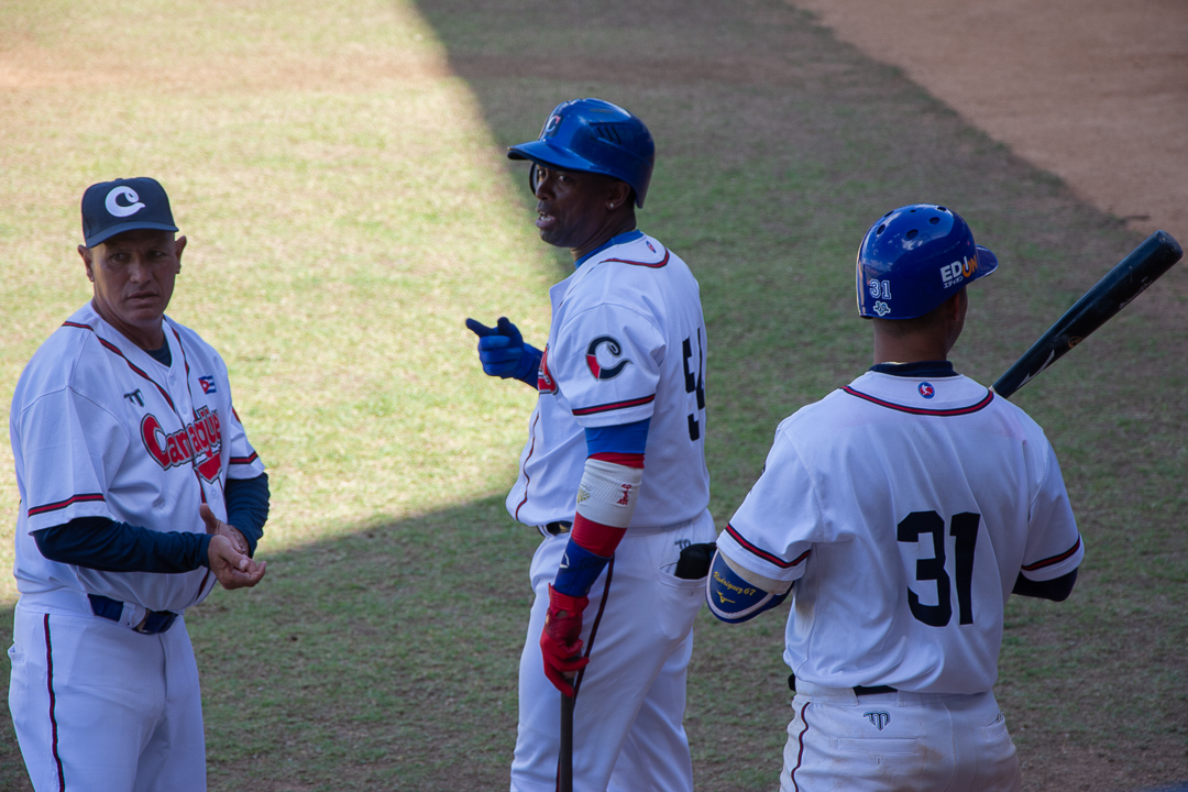 Para completar la tarde de pitcheo tomaron las riendas los derechos Marlon Vega, por la visita, y Ángel Luis Márquez por los de casa, este último admitiendo una limpia en el noveno, fletada por imparable de Orlando Lavandera. En el inning conclusivo, después de dos outs, los camagüeyanos amenazaron con sencillo al derecho de Cardoza, quien volvió a responder viniendo desde la banca y ya acumula seis cañonazos en once turnos como emergente, y base por bolas a Yosbel Pérez, pero todo se enfrió cuando el patrullero derecho capturó un línea “sólida” del novato Christian Martínez.