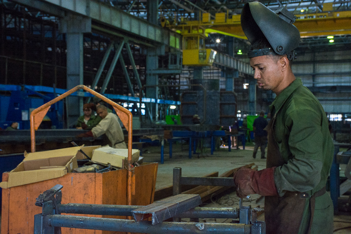 Tras las caretas de los soldadores se esconden rostros jóvenes. Están enfrascados en elaborar moldes para que en el sector de la construcción puedan producirse bloques, lozas, anillas, techo, en fin, para los ambiciosos programas de viviendas.