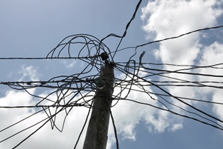 En la calle 3ra., por ejemplo, 22 viviendas están "enganchadas" a un solo poste sostenido por los cables colocados a la buenaventura.