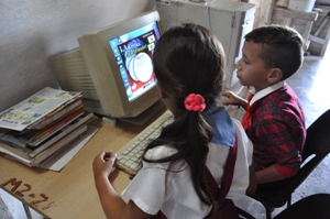 “La escuelita me la he cogido —asegura Orlinda—, aquí tenemos computadora, televisor y grabadora, y todo funciona. Los pequeños tienen dos sesiones de clases, porque los padres no aprobaron quedarnos con una sola. Los que viven muy lejos, que son la mayoría, traen su almuerzo en un pozuelito y los otros van a su casa”.