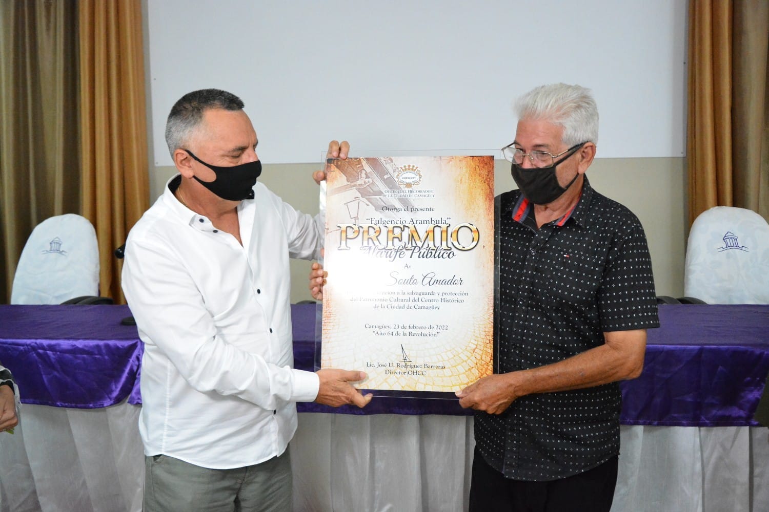 CAMAGÜEY.- El Premio Alarife Público Fulgencio Arambula, que confiere la Oficina del Historiador de la Ciudad de Camagüey (OHCC), recayó de manera excepcional en dos personas: el arquitecto Alexis Souto Amador y el director de la institución José Rodríguez Barreras.