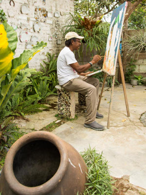 Hoy, ese patio en Vertientes guarda otra quietud. Pero no está vacío. Está lleno de voces, de anécdotas —como aquellas travesías haciendo botella hasta Camagüey—, de tardes de grabado, de domingos de peña, de platos heredados de sus padres. Está lleno de una comunidad que lo reconoce como suyo.