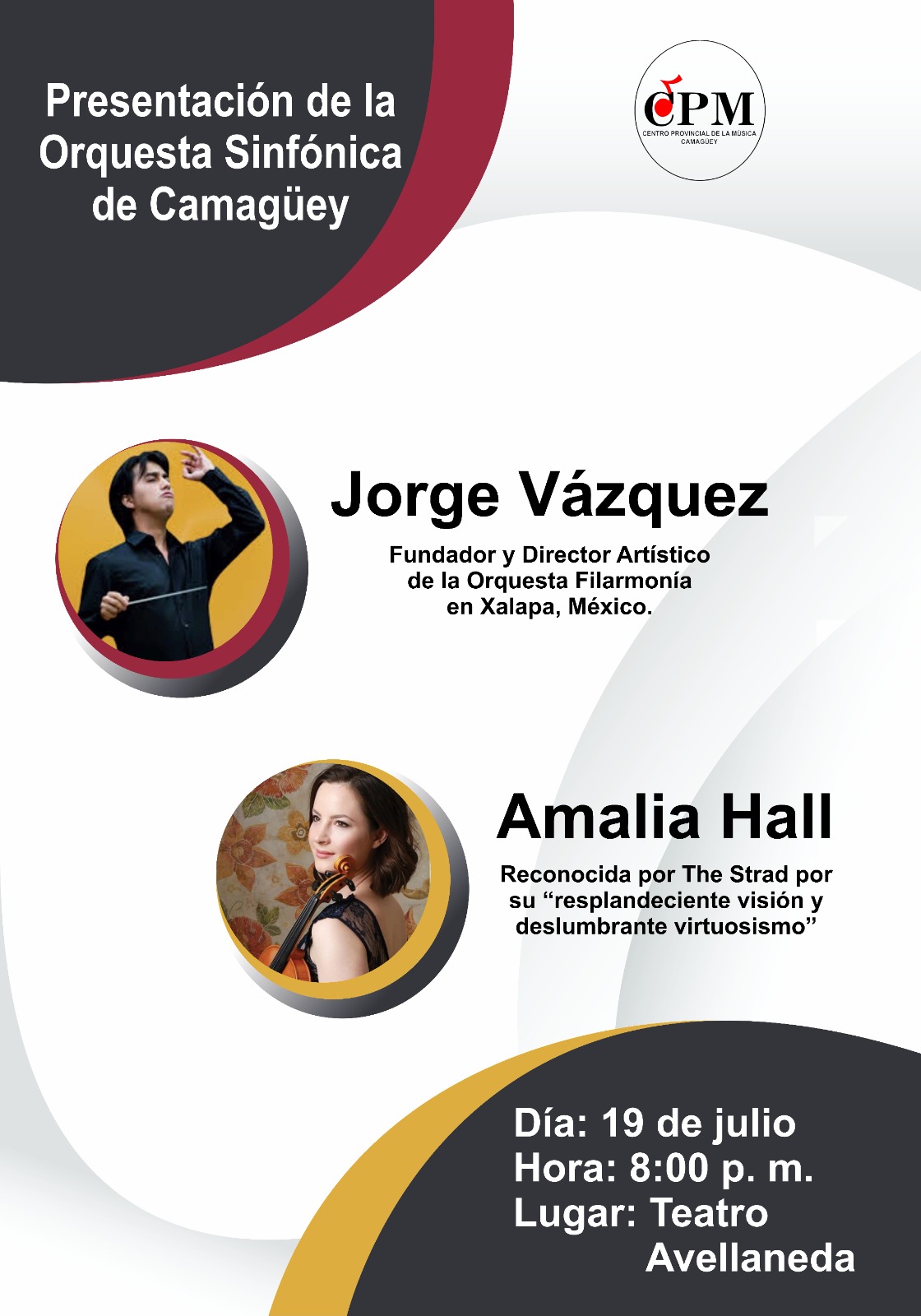 CAMAGÜEY.- La Orquesta Sinfónica de Camagüey invita a un concierto excepcional el próximo 19 de julio a las 8:00 p.m. en el Teatro Avellaneda. Promete ser inolvidable, con dos figuras destacadas del mundo de la música clásica: el director mexicano Jorge Vázquez y la violinista neozelandesa Amalia Hall.