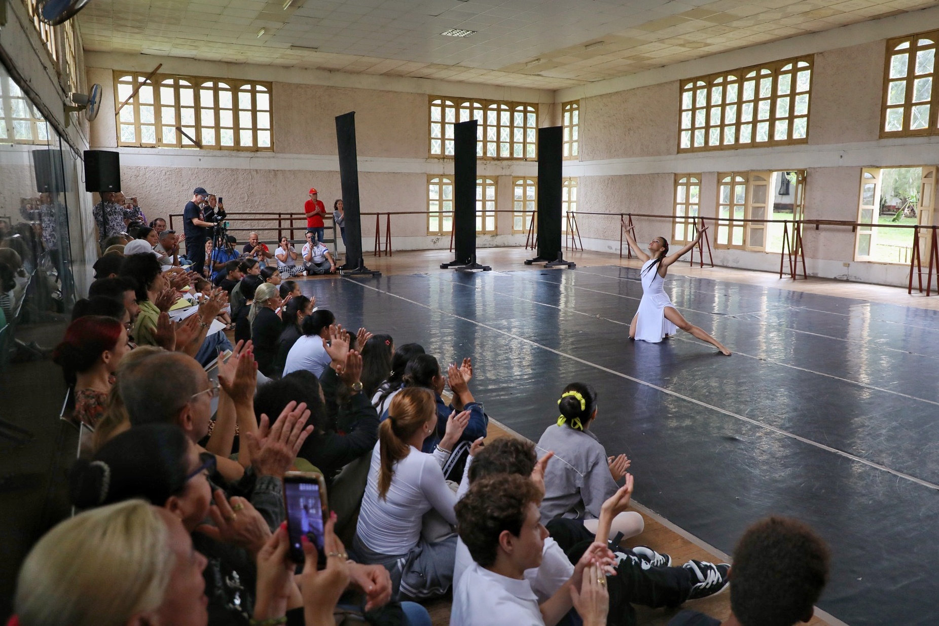 Fue en uno de los salones del Ballet de Camagüey. Un espacio amplio, con espejos que multiplican cada gesto, cada intento, cada logro. Allí, familias enteras acompañaban en silencio, con esa mezcla de tensión y orgullo que solo se entiende cuando se sostiene un sueño ajeno como propio.