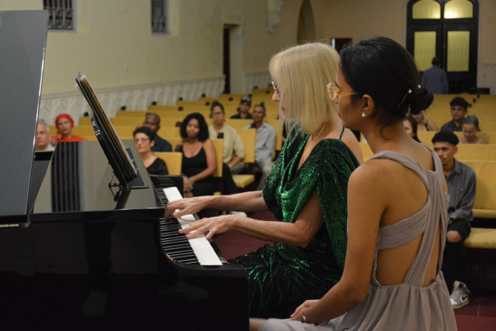 La presentación de la pianista Lourdes Cepero y el contrabajista Eduardo Campo contó con la musicóloga Verónica Fernández, quien dedicó palabras al legado del patriota Marín Varona, compositor, pedagogo y director de orquestas.