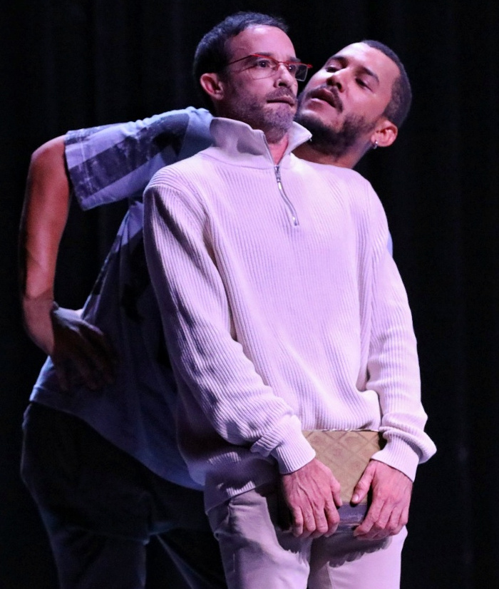 Roberto Romero (Álex) y Georbis Martínez (Bruno) trazan en escena un mapa de emociones que oscila entre la ternura, la ironía y el deseo. En sus cuerpos, el juego actoral tiene un diapasón justo: el roce de lo cotidiano, la pausa del pudor, el desenfado que no necesita justificar su naturaleza. No hay artificio; hay verdad.