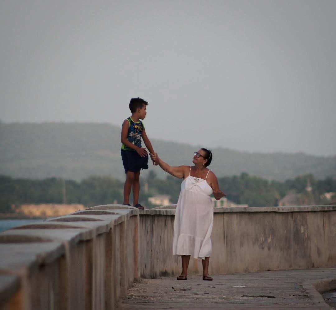 El niño camina por el muro del malecón sin darse cuenta de que cada paso es un recuerdo que ella quiere guardar. Él ríe sin pensar que el tiempo se puede acabar. La abuela lo sostiene con cuidado, temiendo que algún día no pueda recordarlo todo. Lo mira con amor y un poco de miedo, porque sabe que le queda menos tiempo del que quisiera. Y mientras él avanza, ella traga el miedo en silencio, deseando que él recuerde este día cuando ella ya no esté.