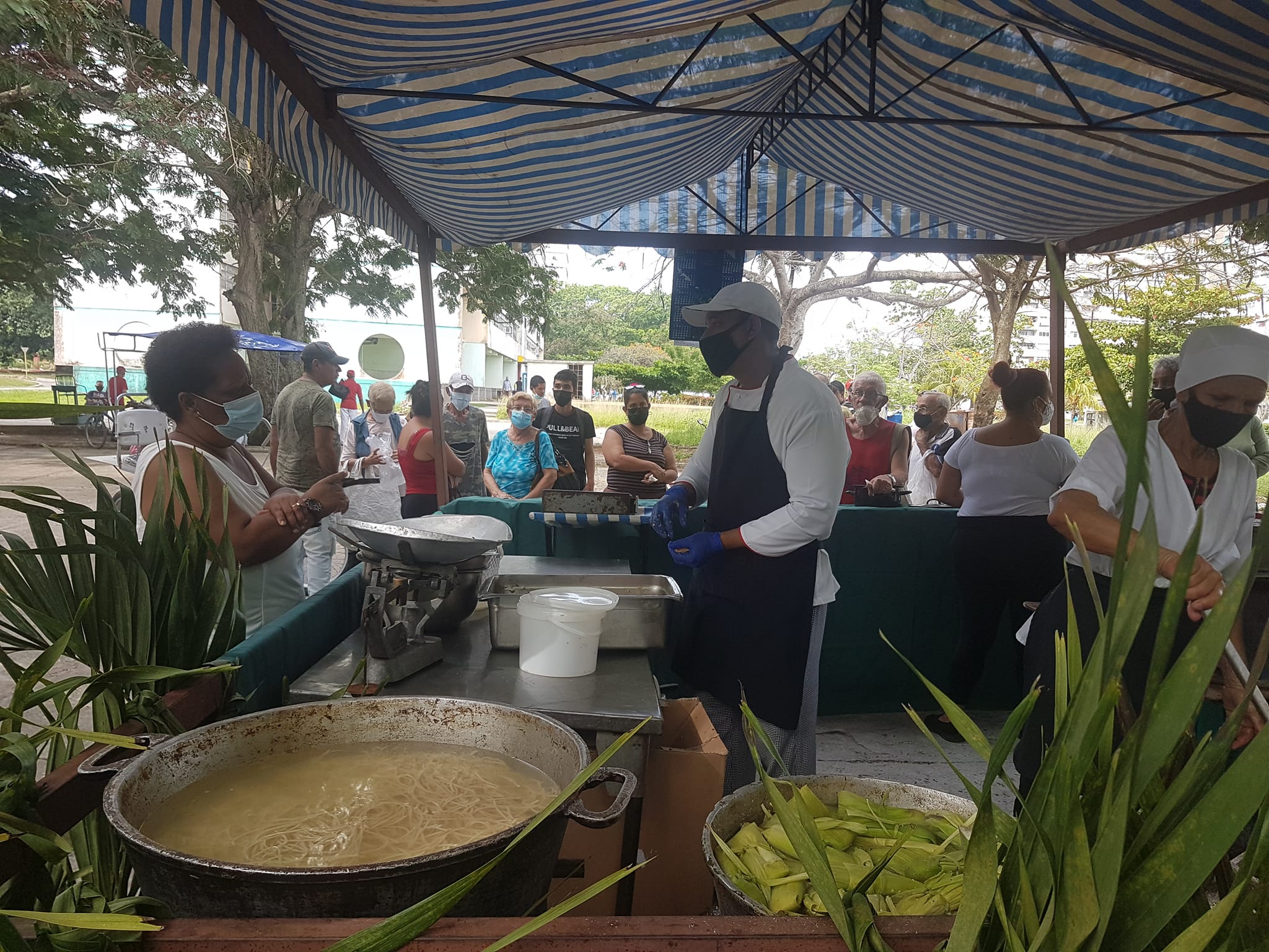 Con precios económicos se ofertan viandas, caldos, arroz y proteínas, espaguetis, tamales, frituras y dulces como merengues y yemitas.