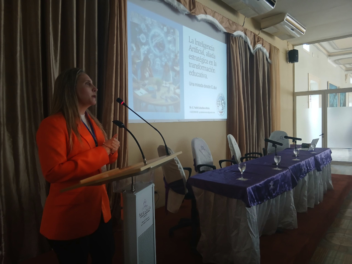 La Dra. C. Yailé Caballero Mota, presidenta de la filial Camagüey-Ciego de Ávila de la Academia de Ciencias de Cuba, abrió el programa científico con su conferencia “La inteligencia artificial, aliada estratégica en la transformación educativa. Una mirada desde Cuba”, donde explicó el papel de la inteligencia artificial en la educación cubana.