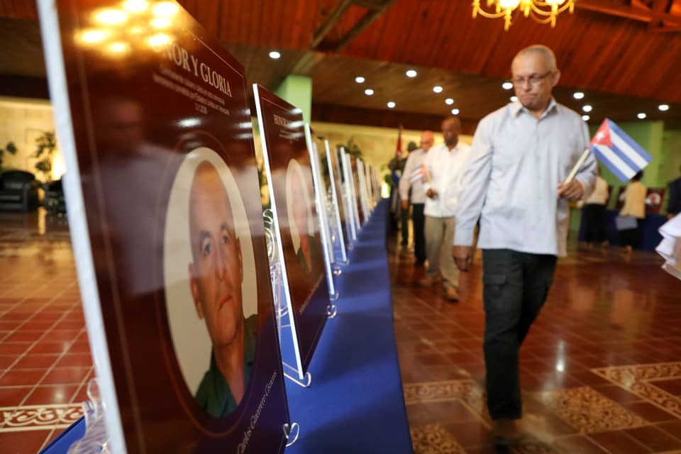 Desde las nueve de la mañana inicia el paso por el salón de protocolo Nicolás Guillén, donde se exponen las fotos de los combatientes y ofrendas florales del pueblo de Cuba, del General de Ejército Raúl Castro Ruz, del primer secretario del Comité Central del Partido Miguel Díaz-Canel Bermúdez y de los ministros de las Fuerzas Armadas Revolucionarias y del Interior.