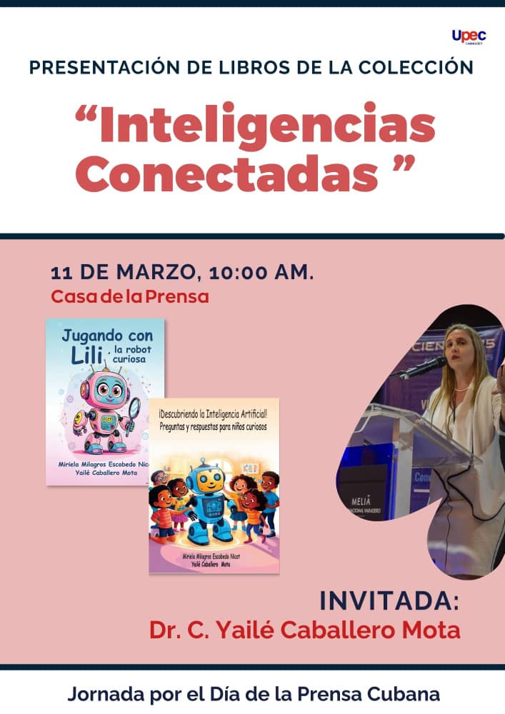 En la Unión de Periodistas de Cuba (UPEC) y como parte de la Jornada de la Prensa, una de sus autoras, Dra.C. Yailé Caballero Mota, presentó la colección de libros. El proyecto, titulado "Inteligencias conectadas", surge de una necesidad y su objetivo principal es alfabetizar digitalmente a todas las edades, desde los más pequeños hasta los adultos mayores, buscando el papel de la familia y conectándola lejos de las pantallas, aprendiendo de la tecnología fuera de ellas. La iniciativa ya ha despertado interés internacional con solicitudes provenientes de Francia y Namibia para su traducción al francés e inglés.