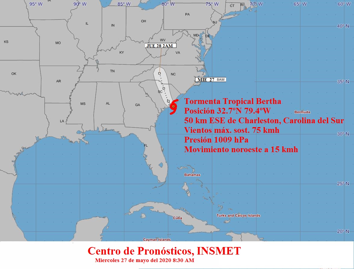LA HABANA.- El Centro de Pronósticos, Instituto de Meteorología de Cuba (Insmet), emitió a las 8:30 a.m. de hoy el aviso de ciclón tropical número uno correspondiente a la tormenta tropical Bertha.