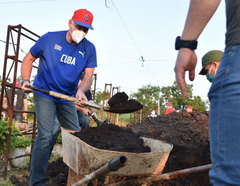 El Presidente participó este lunes en un trabajo voluntario en saludo al Día de la Rebeldía Nacional (26 de julio), en la Unidad Empresarial de Base Granja Boyeros, ubicada en el capitalino reparto Fontanar, y tras las labores dialogó sobre el citado plan de acción con unos cien jóvenes que colaboraron en las tareas.